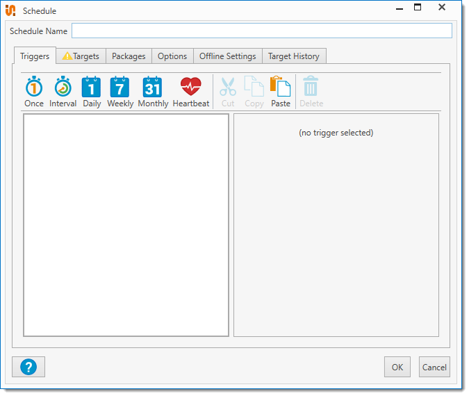 3.On the Triggers tab toolbar, click to select a Schedule Trigger, then define the schedule settings.
