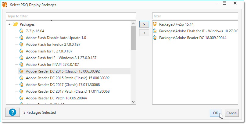 The Select PDQ Deploy Packages window opens.