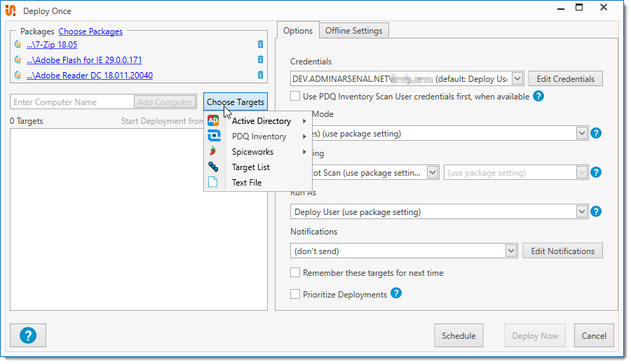 Select target computers using other PDQ Deploy Target Lists. |