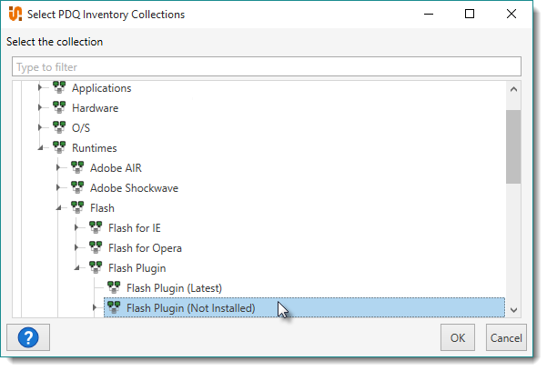 For example of a dynamically linked collection, click Choose Targets > PDQ Inventory > Collection, browse the PDQ Inventory collections, select the collection you want, then click OK.