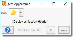 Use the drop down menu to select a custom icon. The top left icon in the list is the default icon for the item. |