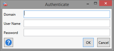 (Only available in Other Computer). Lists the name of the user to authenticate as on the remote computer. Options include Domain, User Name, and Password.