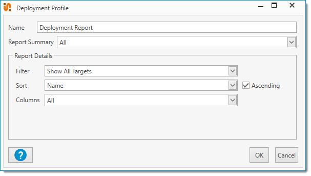 The Deployment Report Profile window opens.