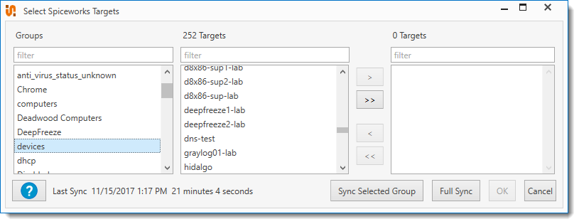 Select target computers from Spiceworks Groups. (See step 4.) |