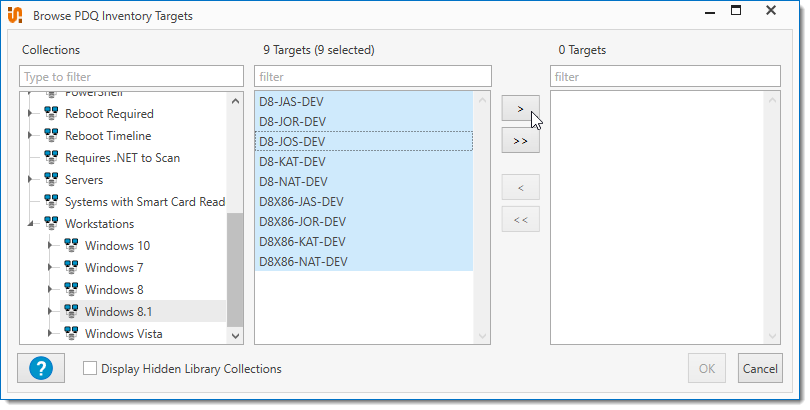 3.Click Choose Targets > PDQ Inventory > Collection.