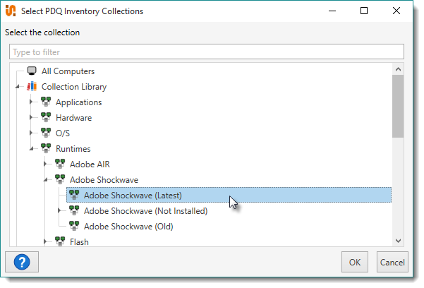 PDQ Inventory can create default or custom collections of computers by attributes such as installed applications, OS version, or hardware configurations. For more information about PDQ Inventory, see our website at https://www.pdq.com/pdq-inventory.