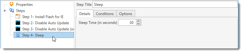 A Sleep Step puts the deployment to sleep (or pauses it) for a set amount of time. (Enterprise mode required.)