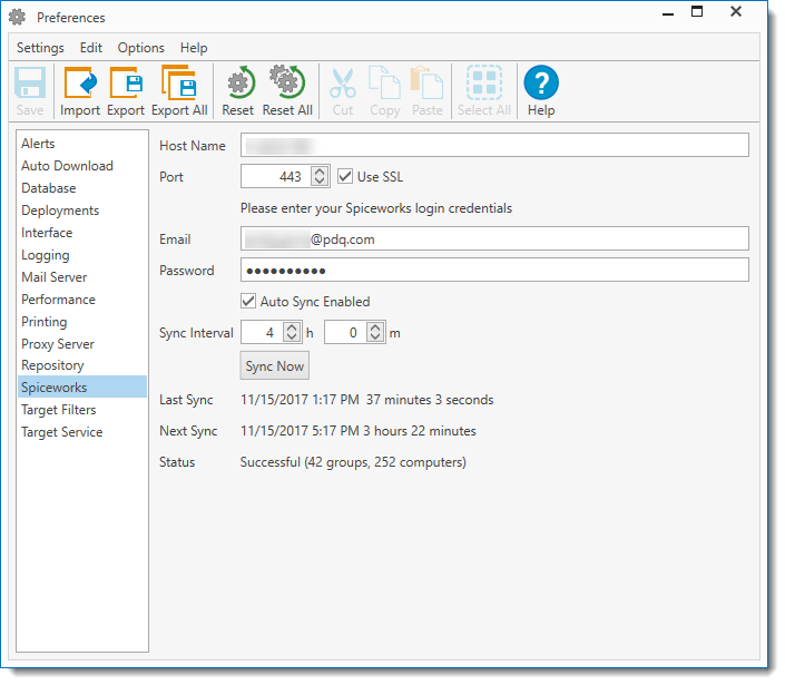 Before you can select or link target computers from your Spiceworks groups, you must first provide your Spiceworks login credentials in PDQ Deploy Preferences. These credentials allow PDQ Deploy to connect to your Spiceworks account.