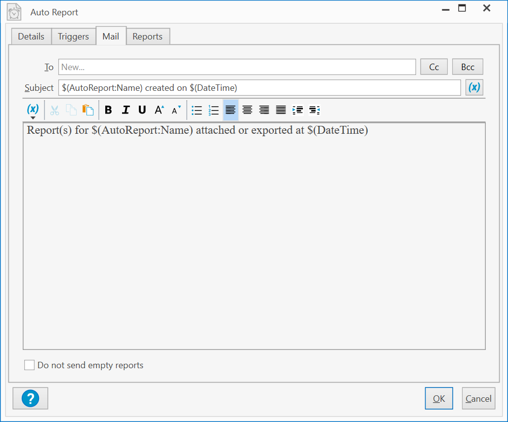5.Check the Do no send empty reports checkbox if you would prefer to receive emails and attachments only when a report generates data.
