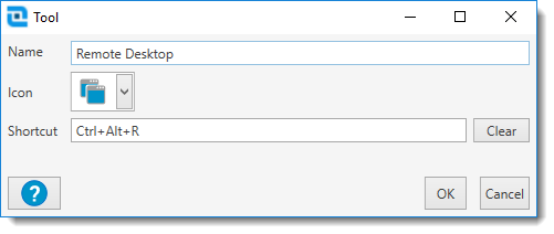 Opens the Tool window for the selected tool. Depending on the type of tool, this window may only include the ability to edit the Name, Icon, and Shortcut. For more information, see Editing a Tool. |