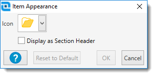 Use the drop down menu to select a custom icon. The top left icon in the list is the default icon for the item. |