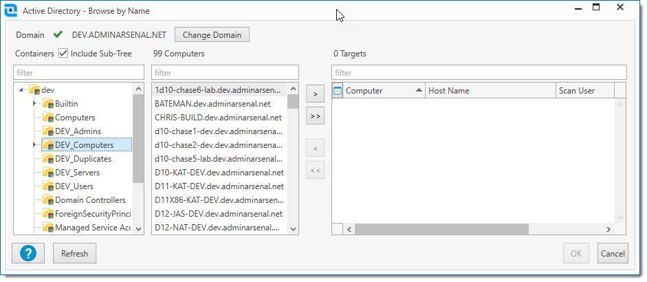Computers can also be added by browsing Active Directory, with Network Discovery, or even by Name. To open the other options, click Add Computers on the main console toolbar and choose from the Active Directory - Browse by Name, Network Discovery, or By Name (or click Computer > Add Computers). (Enterprise mode required to use Network Discovery.)