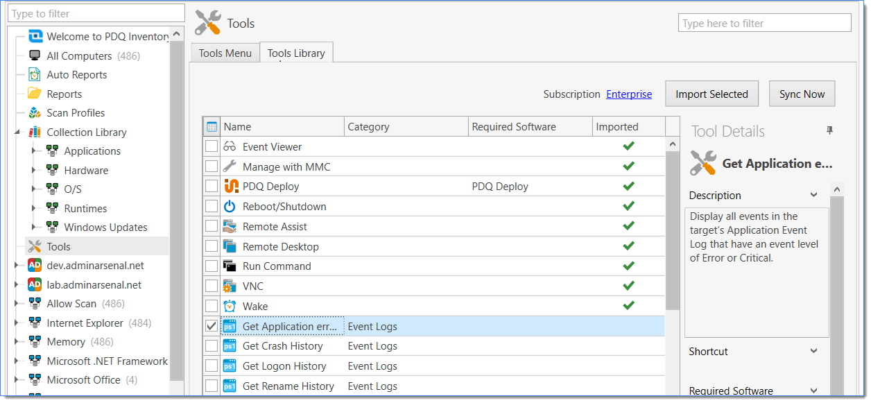 In PDQ Inventory, it's easy to import tools to your console machine. Tools can also be duplicated and customized, serving as great references for creating your own tools.
