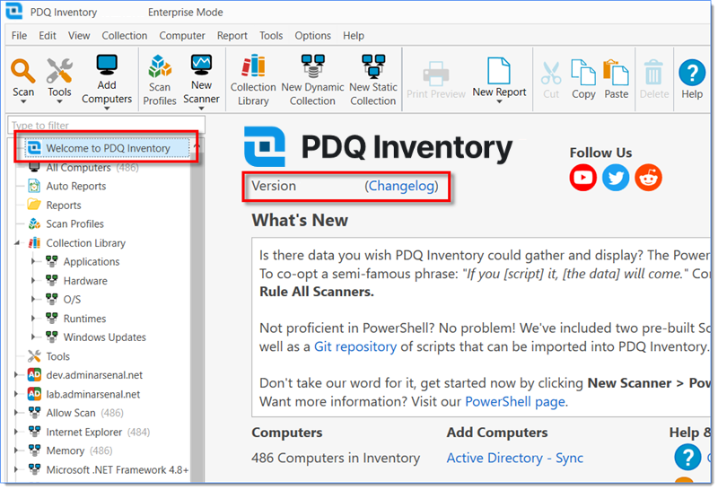 Update notes have moved. In the console, navigate to Welcome to PDQ Inventory. Next to the version, click Changelog.
